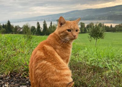 Im Juni 2017 zogen wir mit unseren beiden Katzen, Manucci und Biggs, von Giswil nach Baldegg ins Erbsrüti. Der Umzug gestaltete sich für unsere Katzen, aber auch für mich, als recht schwierig. Uns fehlte die wilde Umgebung, fast ausschliesslich mit Flora und Fauna umgeben. Natürlich liebten wir von Beginn an die schöne Sicht auf den See. Und wohin auch immer unsere Blicke schweiften, sahen wir Katzen.